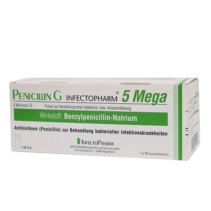 Показания. Купить антибиотик Инфектоциллин для лечения сифилиса и других болезней, которые вызваны бледной трепонемой, таких как фрамбезия, пинта. Также Infectocillin эффективен в профилактике ревматизма и гнойных осложнений в послеоперационный период.