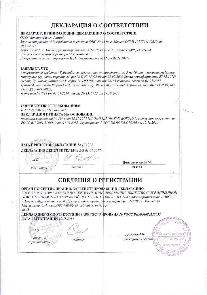 Буденофальк - капсулы, 3 мг. По 10 капс. в алюминиевом/ПВХ блистере, по 2, 5 или 10 блистеров в картонной пачке.