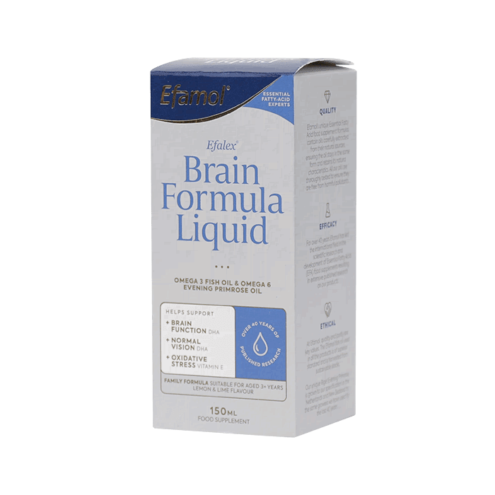 Уникальный состав продукта, включающий жиры и витамины, способствует нормализации целого ряда систем жизнедеятельности организма: зрения, памяти, гормонального фона. Препарат рекомендован детям от 3-х лет и взрослым. Основой всех продуктов Efamol являются питательные вещества Омега-3, Омега-6, необходимые для нормального функционирования клеток человеческого организма. Для производства биодобавок используются высококачественный рыбий жир, масло примулы вечерней, витамины. Сироп Efamol Efalex Brain Formula - это пищевая добавка, содержащая в себе расширенное сочетание Омега 3 и Омега 6 полиненасыщенных жирных кислот, которые помогают организму нормализовать работу головного мозга, зрительной функции, а также повышают концентрацию внимания.