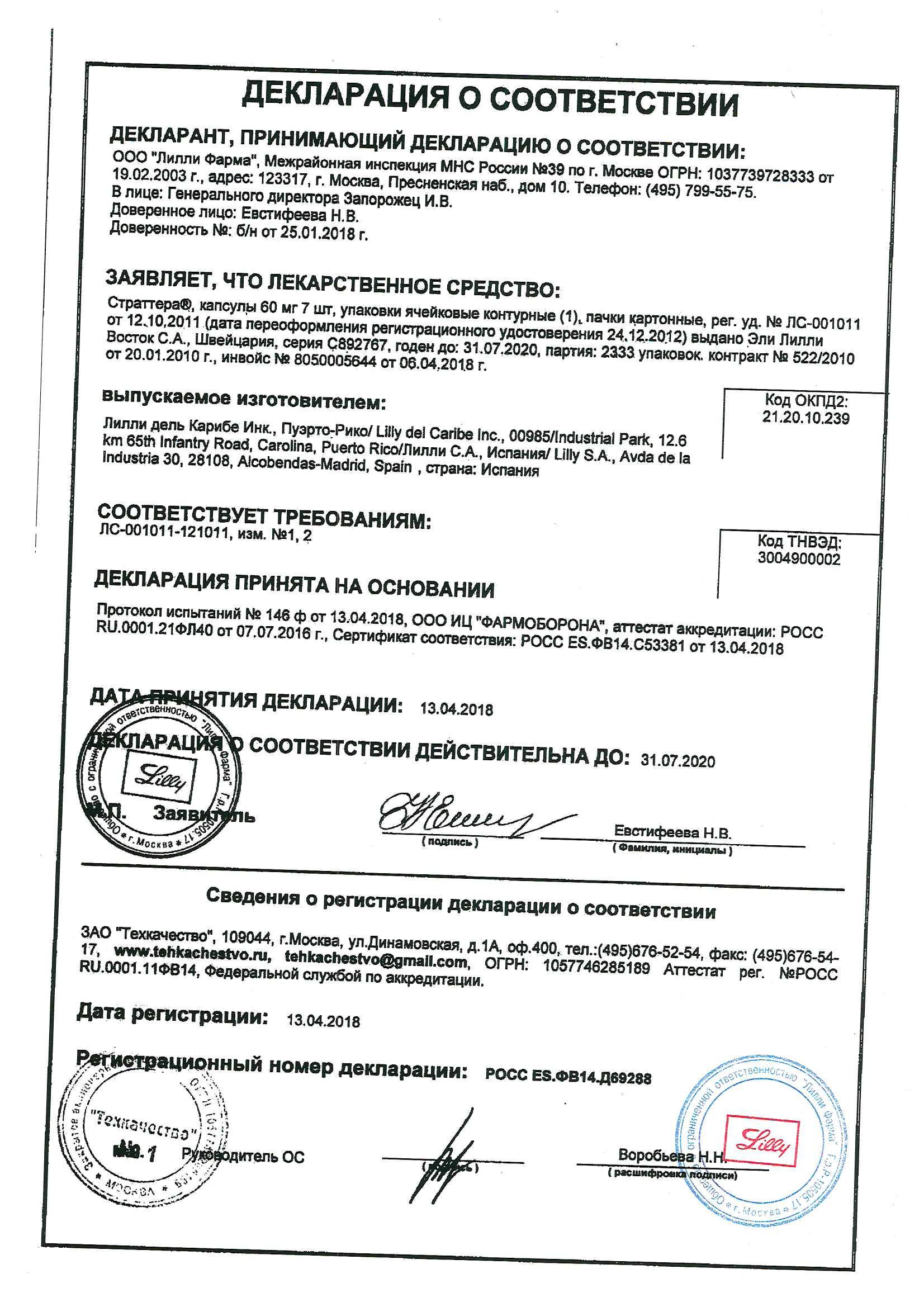Страттера является симпатомиметиком центрального действия. Содержит активное вещество атомоксетина гидрохлорид (эквивалентен атомоксетину) 60 мг.