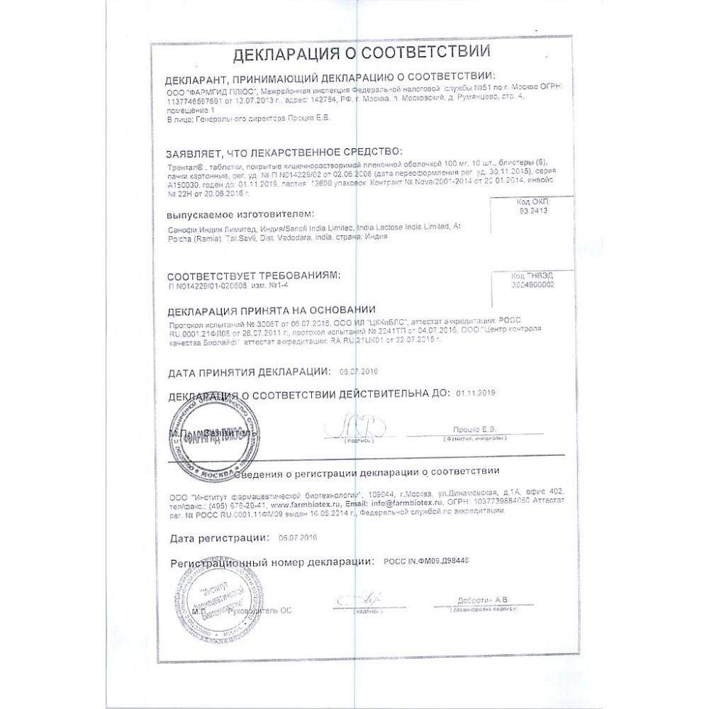 Показания препарата Трентал