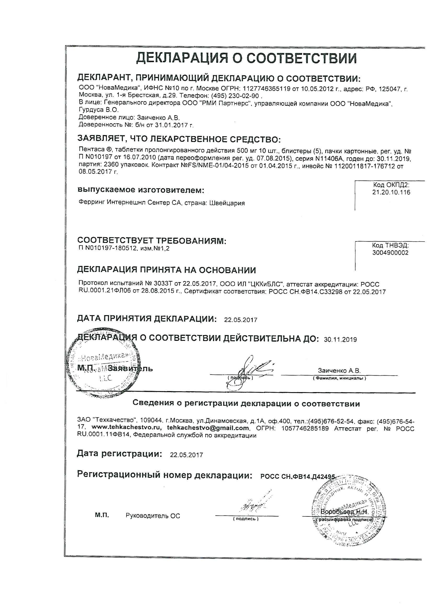 Срок годности Пентаса®